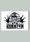Imprimée sur papier d'art épais, au format carte postale.