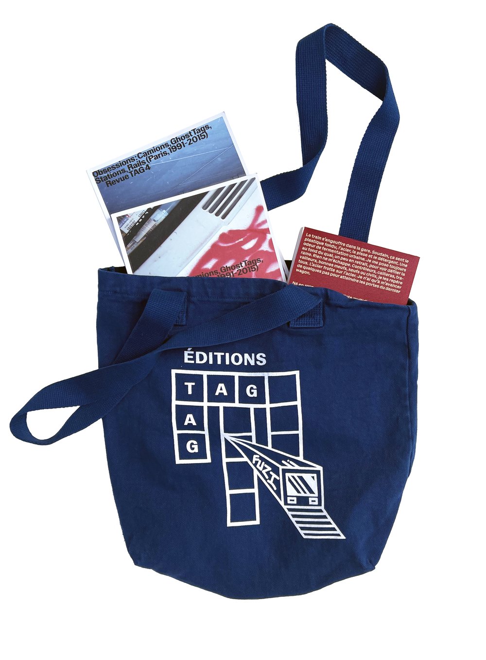 After four publications from ÉDITIONS TAG, it was time to offer you a tote bag featuring their emblem. I chose to have it made in California through my brand IPBF. The result is a super thick denim tote bag, entirely made in the USA, which you can use for carrying not only books but also your spray cans.
